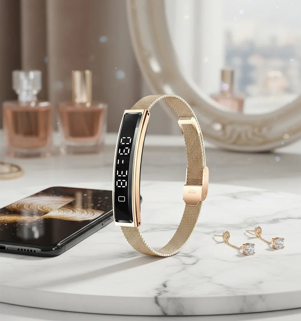 L'élégance qui veille sur vous. Un accessoire stylé, discret et fonctionnel pour rester connectée sans effort.